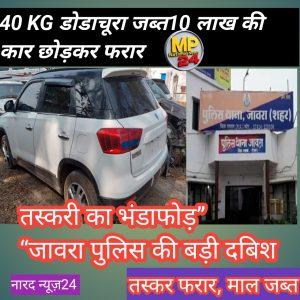 जावरा पुलिस की बड़ी कार्रवाई, 40 किलो डोडाचूरा जब्त 10 लाख की ब्रेजा कार छोड़कर फरार हुआ तस्कर 40 किलो डोडाचूरा व 10 लाख की